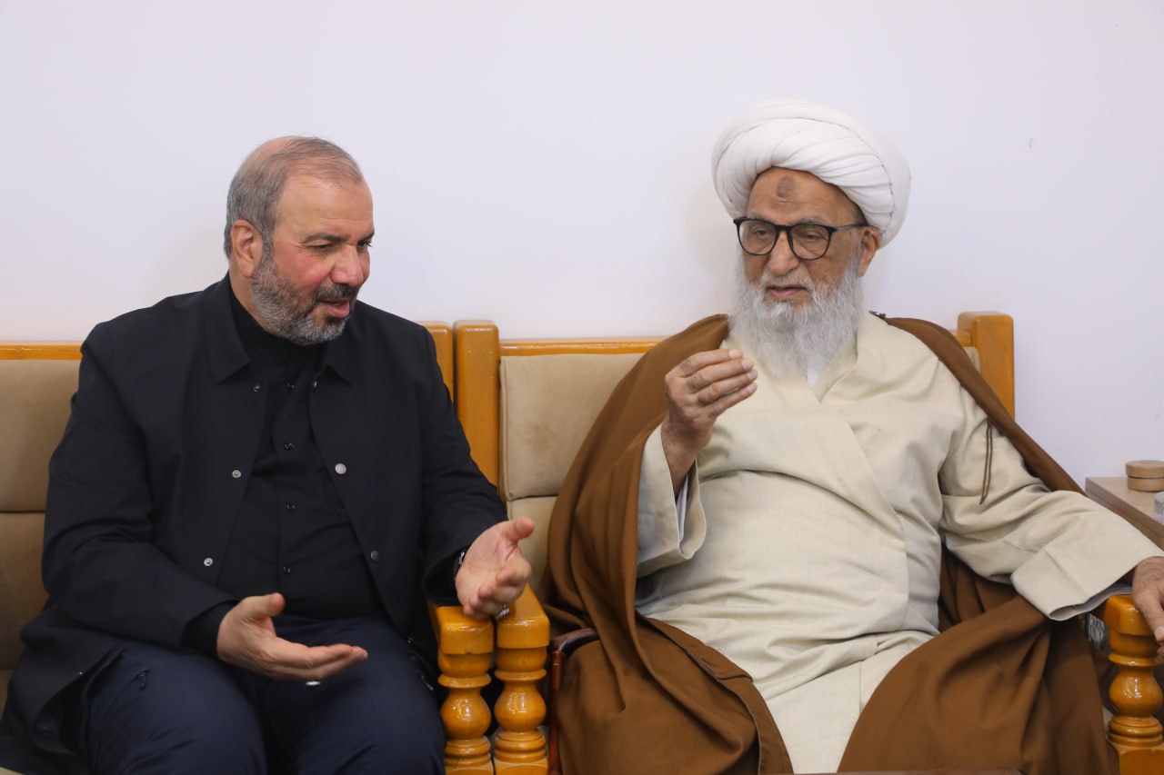 النجف الأشرف_ استقبل سماحة المرجع الديني بشير النجفي (دام ظله) سعادة سفير الجمهورية الإسلامية الإيرانية لدى العراق، السيد محمد كاظم آل صادق، والوفد المرافق له، في مكتبه بالنجف الأشرف.واستذكر سماحته شهداء الأمة الإسلامية، ولا سيما شهداء الاعتداءات التي طالت الجمهورية الإسلامية الإيرانية، وفي مقدمتهم المرجع الديني قائد الثورة الإسلامية، آية الله السيد الشهيد علي الحسيني الخامنئي (قدس سره).وابتهل سماحته إلى