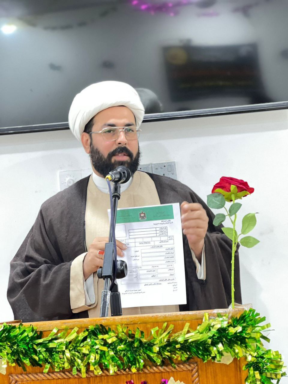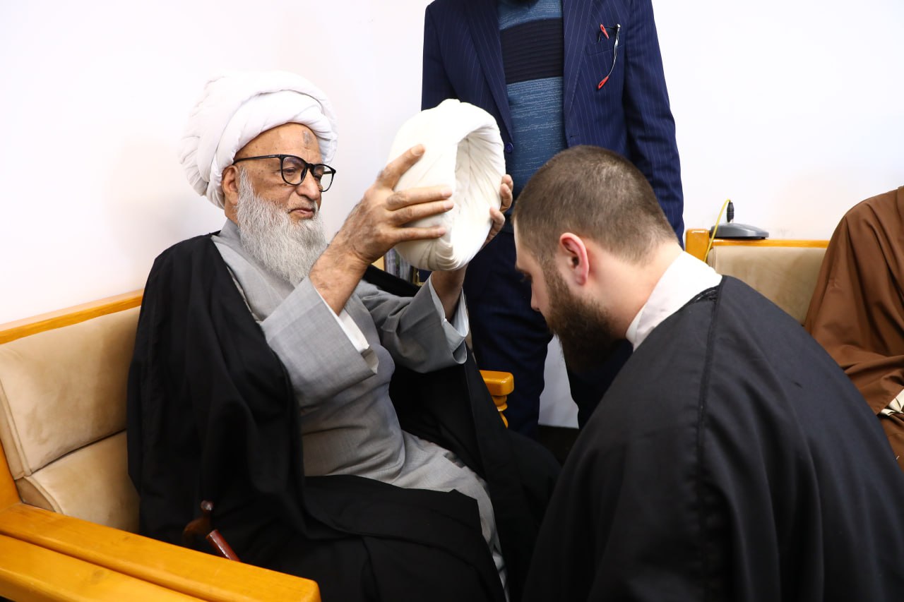 Bir qrup dini elm tələbəsi Əmirul-möminin, müttəqilərin imamı imam Əli ibn Əbu Talibin (ə.s) mövludu münasibətilə Ayətullah əl Üzma Şeyx Bəşir Hüseyn Nəcəfinin (kölgəsi davamlı olsun) əli ilə iman və təqva libasını — əmmaməni geyinmək şərəfinə nail olmuşdur.Bu mübarək mərasim zamanı hörmətli mərcəi-təqlid (kölgəsi daim olsun) dini elm tələbələrinə ünvanlanan bir sıra nəsihət və tövsiyələr vermiş, sözün əməldən önə keçməməsinin vacibliyini vurğulamışdır. O, elm tələbəsinin dinə