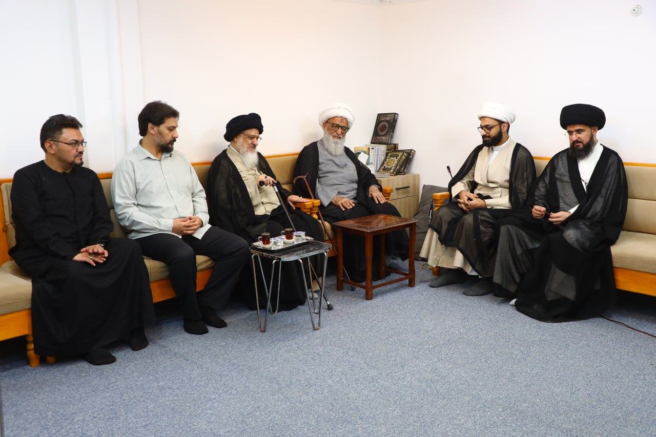 In a significant meeting of religious scholars, His Eminence Grand Ayatollah Sheikh Bashir al-Najafi received prominent scholar His Eminence Sayyid Ali al-Milani and his accompanying delegation at his office in the holy city of Najaf on Monday.The meeting focused on the esteemed position of scholars following the school of Ahl al-Bayt (the Prophet's Household) and their pioneering role in serving Islamic jurisprudence and spreading the