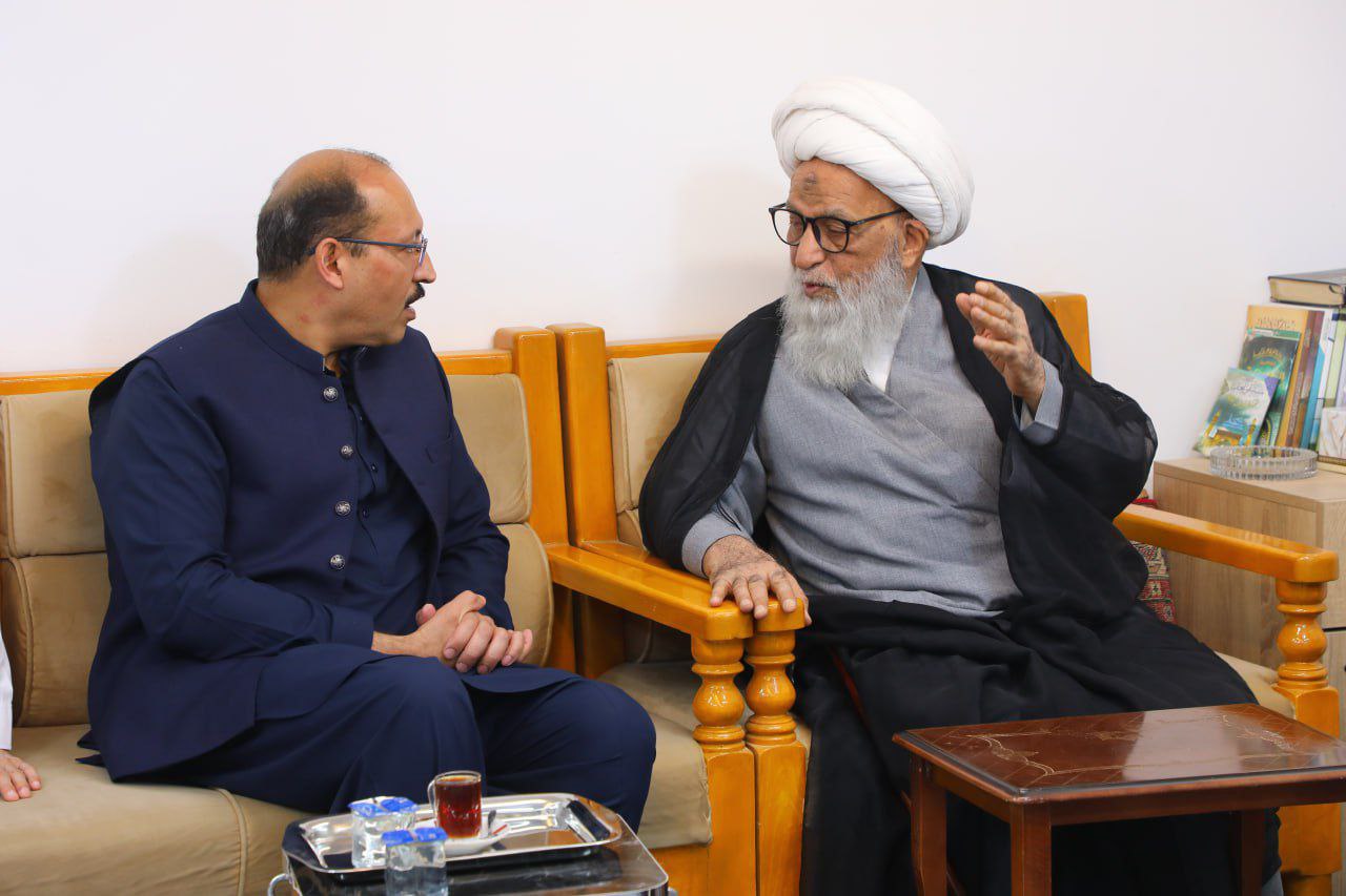 His Eminence, the Grand Religious Authority, Grand Ayatollah Sheikh Bashir Hussain Al-Najafi (May Allah prolong his life), received His Excellency the Pakistani Ambassador to Iraq, Mr. Muhammad Dheshan Ahmed.During the meeting, His Eminence the Najaf Marja' (May Allah prolong his life) addressed the challenges facing Pakistani visitors coming to the holy shrines, especially for the visitation of Imam Hussein (peace be upon him), emphasizing the importance