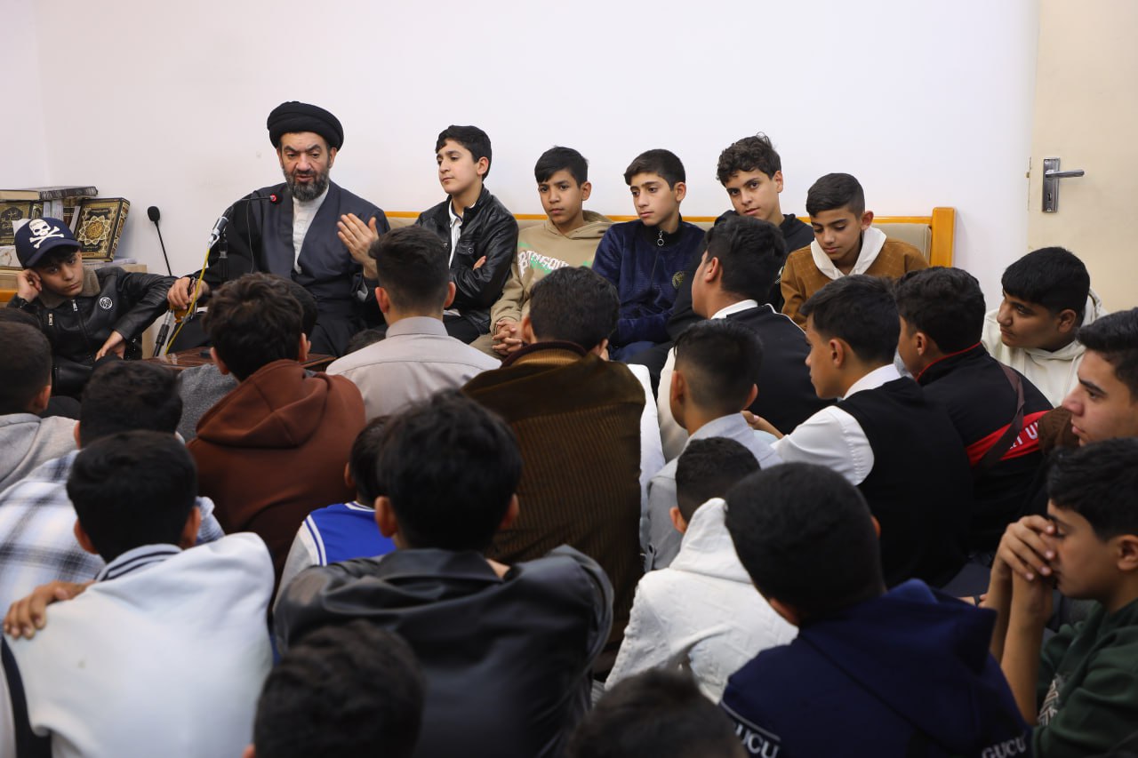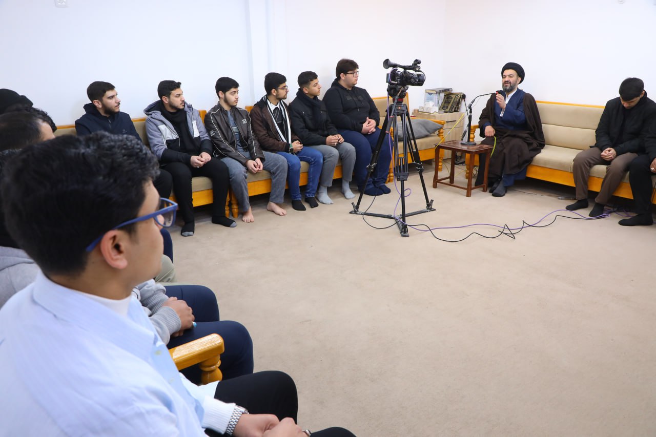 A student delegation from the capital, Baghdad, visited the office of His Eminence Grand Ayatollah Bashir al-Najafi (may Allah prolong his life), where they were received by His Eminence Sayyid Muhammad Taher al-Jazaeri in a meeting marked by a spiritual and educational atmosphere.During the gathering, Sayyid al-Jazaeri emphasized that religious commitment is not limited to rituals alone, but rather represents a comprehensive upbringing and a