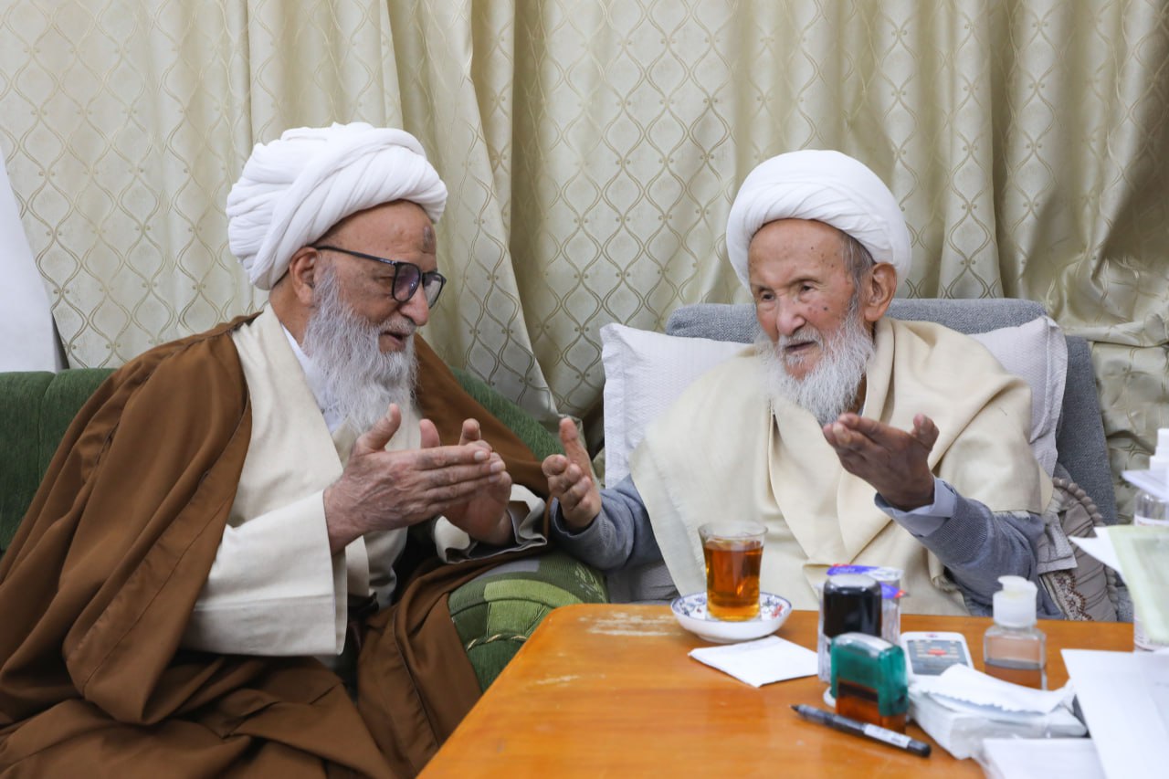 Najaf Ashraf_ Grand Religious Authority, Grand Ayatollah Sheikh Bashir Hussein Al-Najafi (may Allah prolong his life) visited Grand Religious Authority, Grand Ayatollah Sheikh Ishaq Al-Fayyadh (may Allah prolong his life), during the holy month of Ramadan.During this blessed visit, the two esteemed religious authorities supplicated to Allah Almighty to grant success to the Islamic nation in following the path of righteousness and reform, to protect