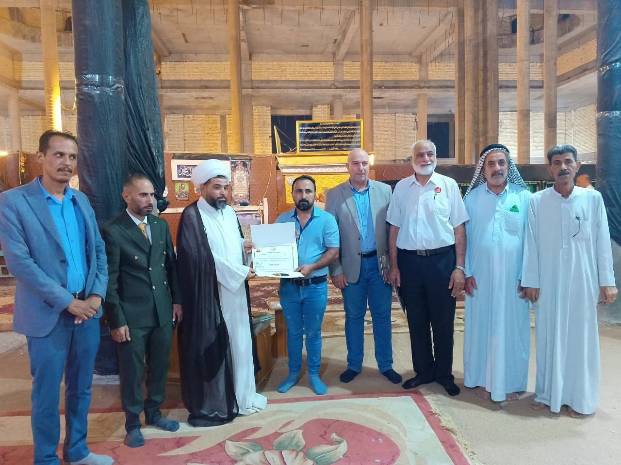 الديوانية_ كرّم معتمد مكتب المرجع النجفيّ (دام ظله) في محافظة الديوانية عدداً من مسؤولي الهيئات والمواكب الحسينيَّة، تثميناً لجهودهم المخلصة في خدمة الشعائر الحسينيَّة والمجتمع.