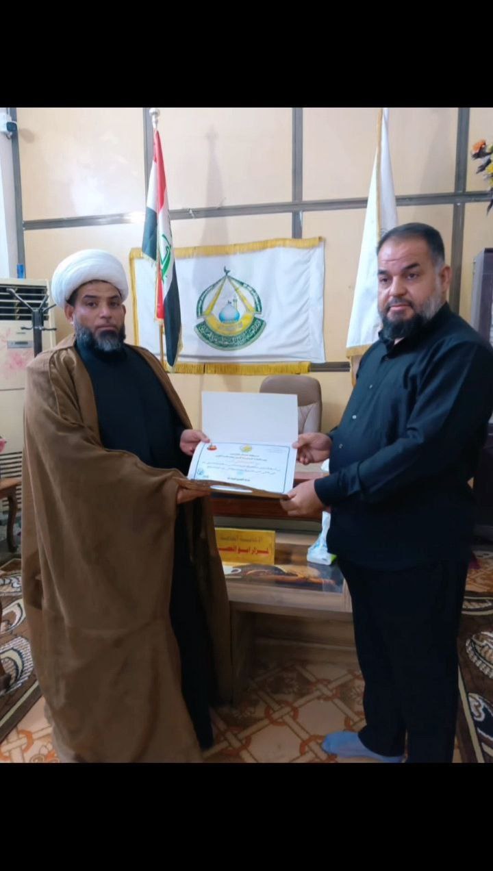 معتمد مكتب سماحة المرجع النجفيّ في محافظة الديوانية يكرّم الأمانة الخاصة لمرقد أبي الفضل بن الكاظم (ع)