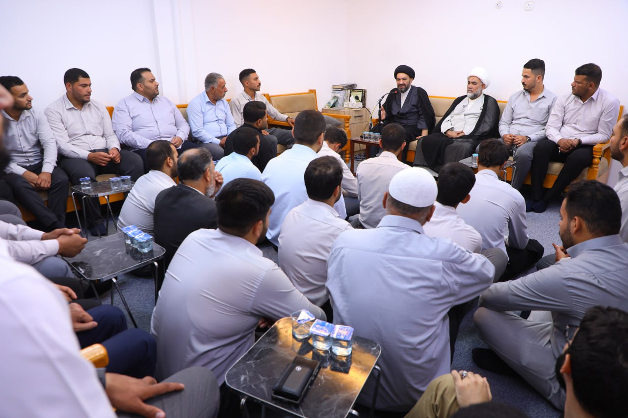 A delegation from the staff of the Holy Al-Abbas Shrine visited the office of the Najaf Marja' (may his shadow endure). They were received by His Eminence Sayyid Muhammad Tahir Al-Jaza'iri, who welcomed the delegation and conveyed to them the greetings and prayers of the Marja'. He emphasized the importance of belonging to this religious institution and the honor of serving within it.